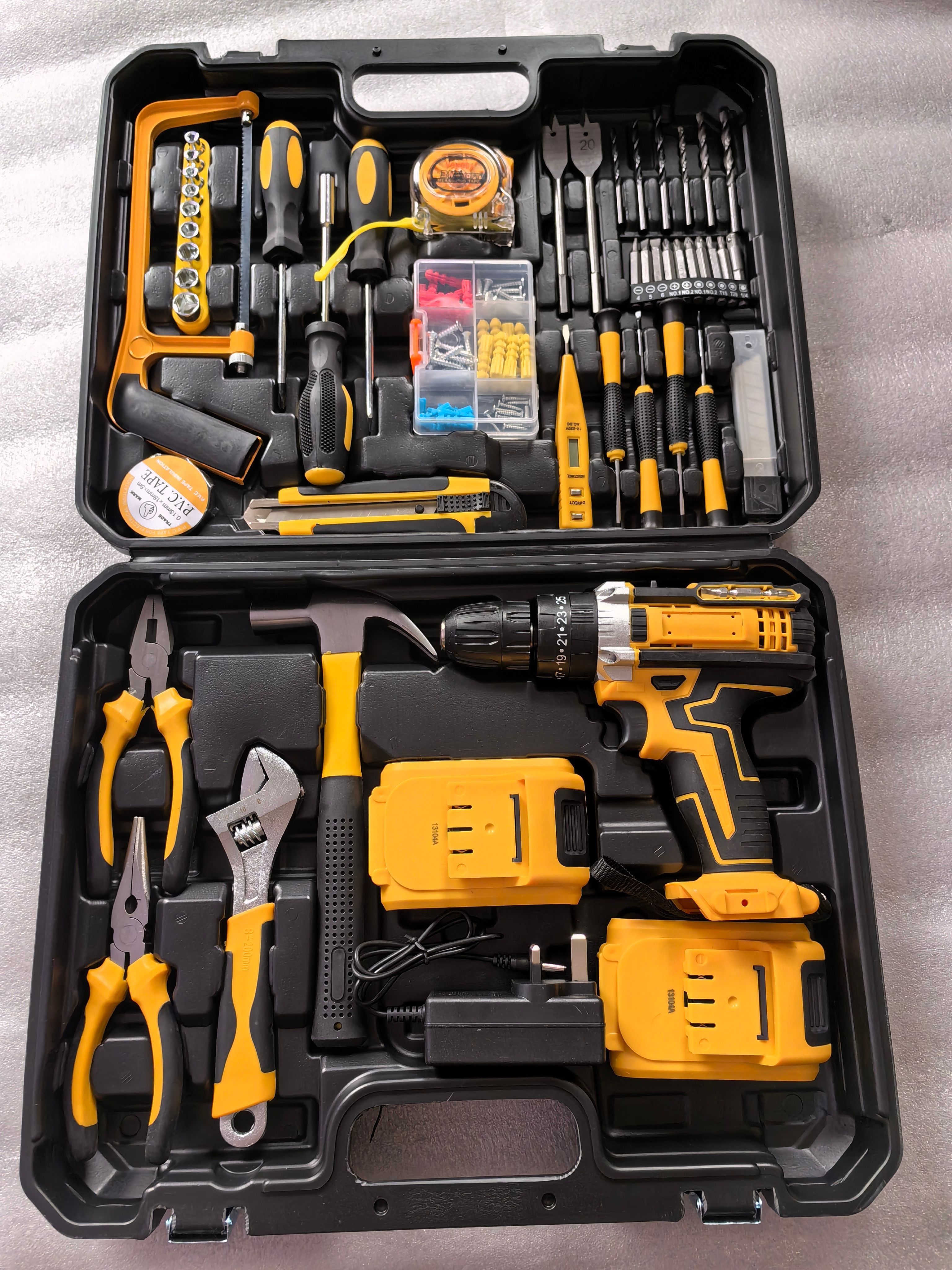 شنيور قوي، يشتغل بالبطارية، ومعاه 120 قطعة كاملة لكل شغل بيخطر بالك.